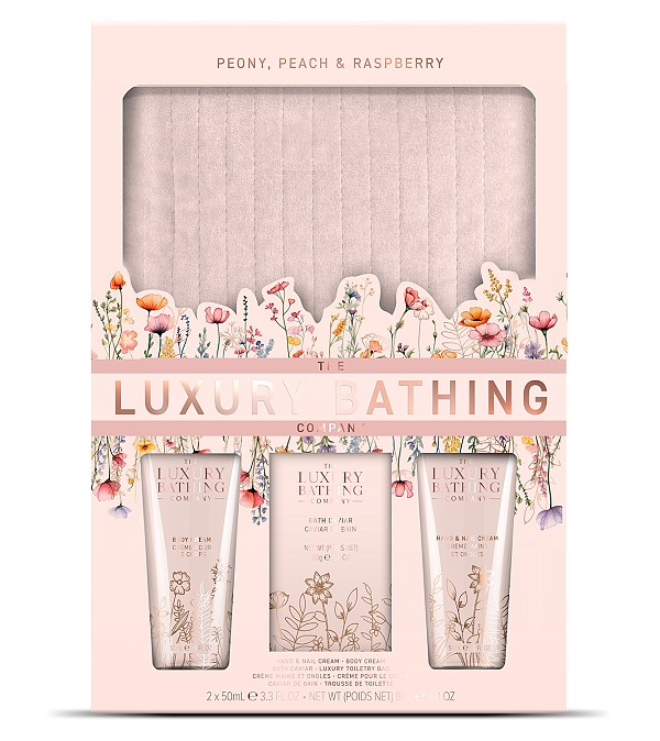 Elegantní dárková sada v sobě spojuje jemnou péči, romantický design a smyslnou vůni inspirovanou anglickou květinovou zahradou. Sada ukrývá hebkou sametovou taštičku, pečující krém na ruce a nehty, tělový krém a perličky do koupele – ideální pro chvíle klidu a regenerace. Produkty s vůní pivoňky a růže doplněné šťavnatými tóny mandarinky, malin a sladké broskve navozují pocit radosti a pohodlí. Perfektní dárek pro každou ženu, která si umí vychutnat klidné víkendové momenty jen pro sebe.