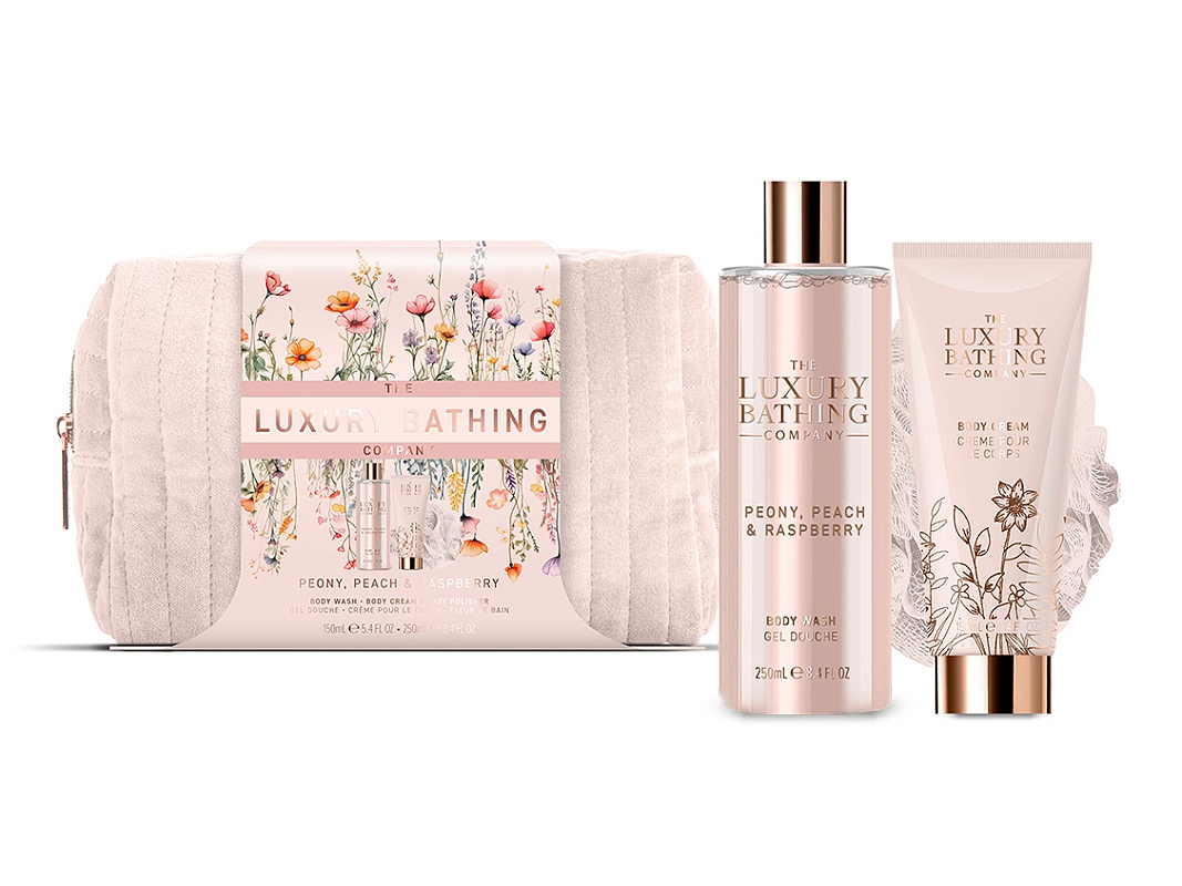 Tato nádherná dárková sada produktů péče o tělo rozmazluje Vaši pokožku během každodenního koupelového rituálu. Exkluzivní kolekce s vůní šťavnatých malin a sladkých broskví doplněná o květinové tóny pivoněk zahalí tělo dávkou relaxace a odpočinku. Provoní pokožku těla a zanechá ji hebkou a hladkou na dotek.
