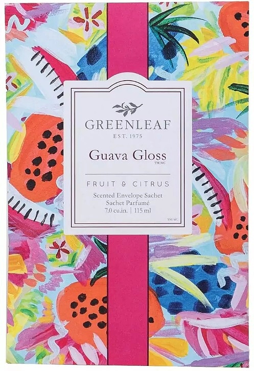 Směs mandarinek a grapefruitů s kokosem vytváří dokonalou tropickou vůni. Guava Gloss dodává všem pocit nekonečného léta! Vonný sáček nabízí několik možností použití. Můžete jej umístit do šatní skříně a provonět své prádlo, vhodný též do auta či toaletu. Vysypete-li jeho obsah na podlahu a následně vysajete vysavačem, budete si tuto vůni připomínat při každém dalším úklidu. Vonný sáček lze též doplnit vonnými svíčkami či difuzéry se stejnou vůní značky Greenleaf. Popis vůně: hlava – červená manadrinka, grapefruit, srdce: guava, marakuja, základ: broskev, kokosové mléko.
