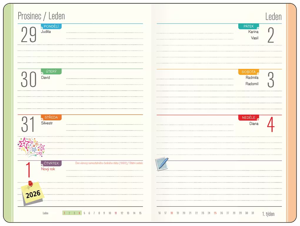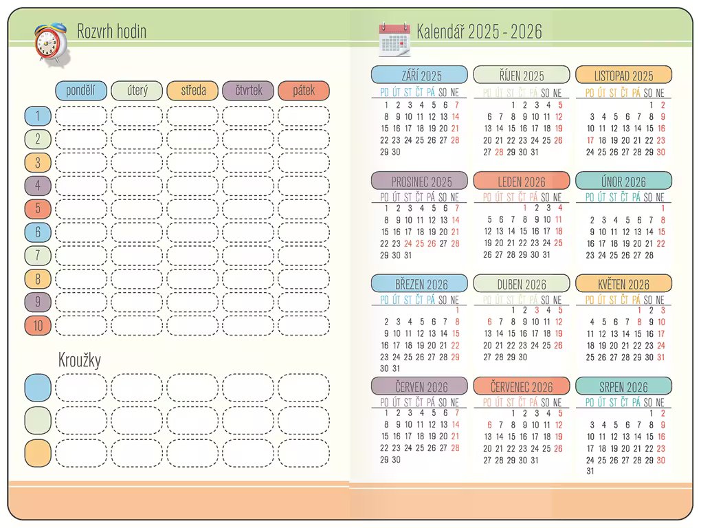 Studentský diář 100 x 150 mm na školní rok 2025/2026.