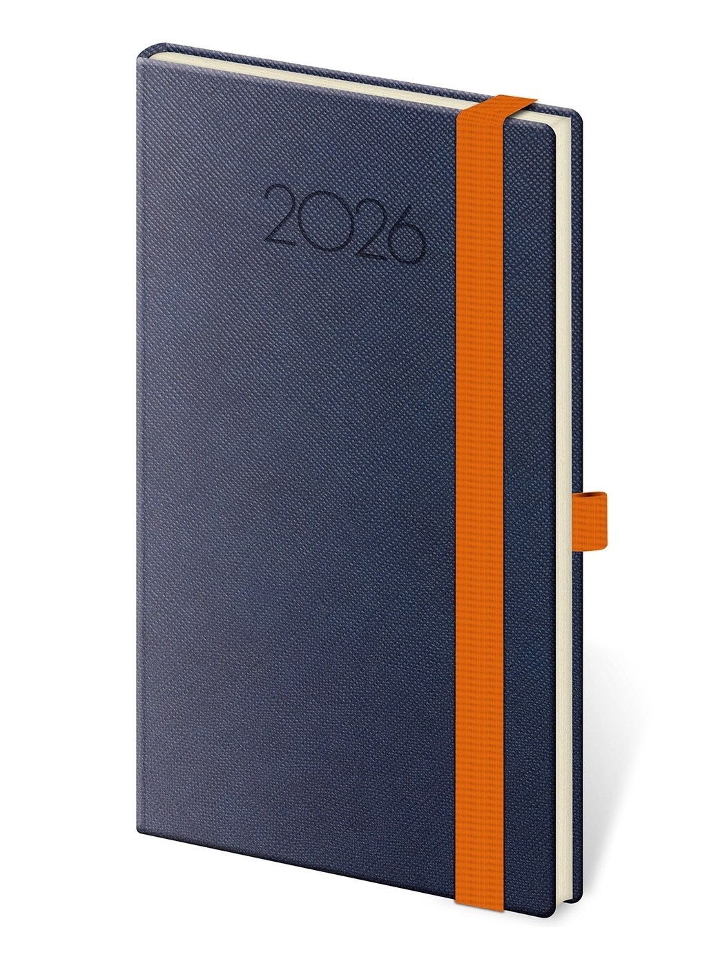 Helma 365 Týdenní kapesní diář 2026 - New Praga modrý s gumičkou