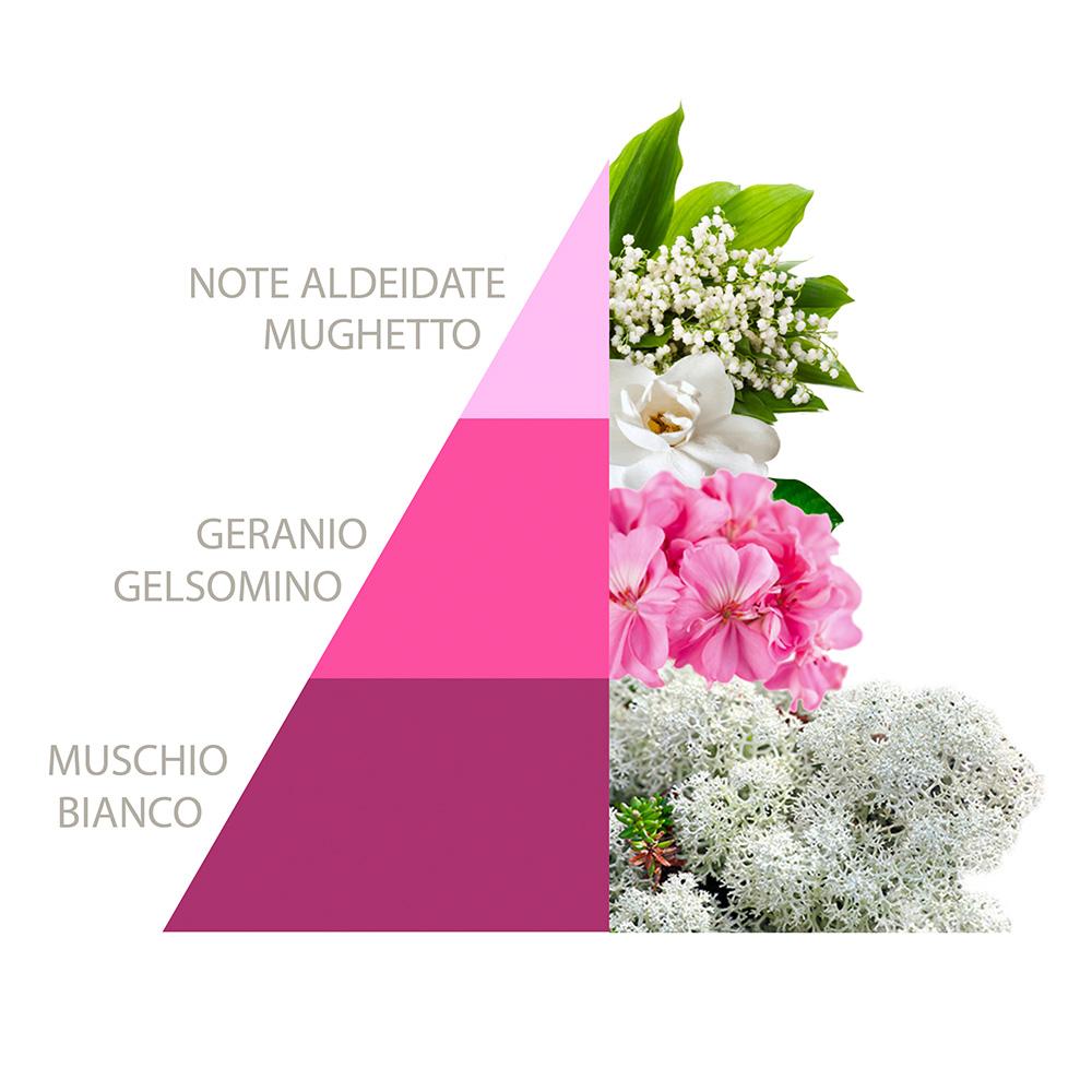 Tato vůně je svěží a květinová, s jemnými tóny konvalinky, pelargónie a jasmínu, které vytvářejí elegantní a čistý květinový akord. Bílý pižmo a aldehydové tóny přinášejí vzdušnou lehkost a svěžest, čímž kompozici dodávají sofistikovanou čistotu.