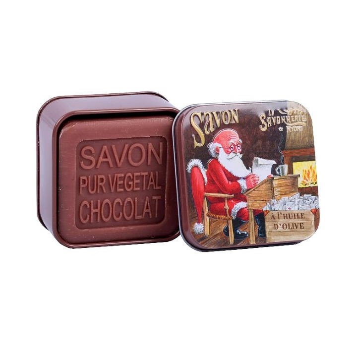 Tuto krásnou starodávnou plechovou krabičku „Letter to Santa“ navrhl Luc Mazan – místní umělec – pro naši vánoční kolekci. Dodává se s mýdlem s vůní čokolády 3,5 oz, obohaceným o organické bambucké máslo a olivový olej Nyons, dvě složky s ochrannými a změkčujícími vlastnostmi. Toto mýdlo je vhodné pro použití na všechny typy pleti.