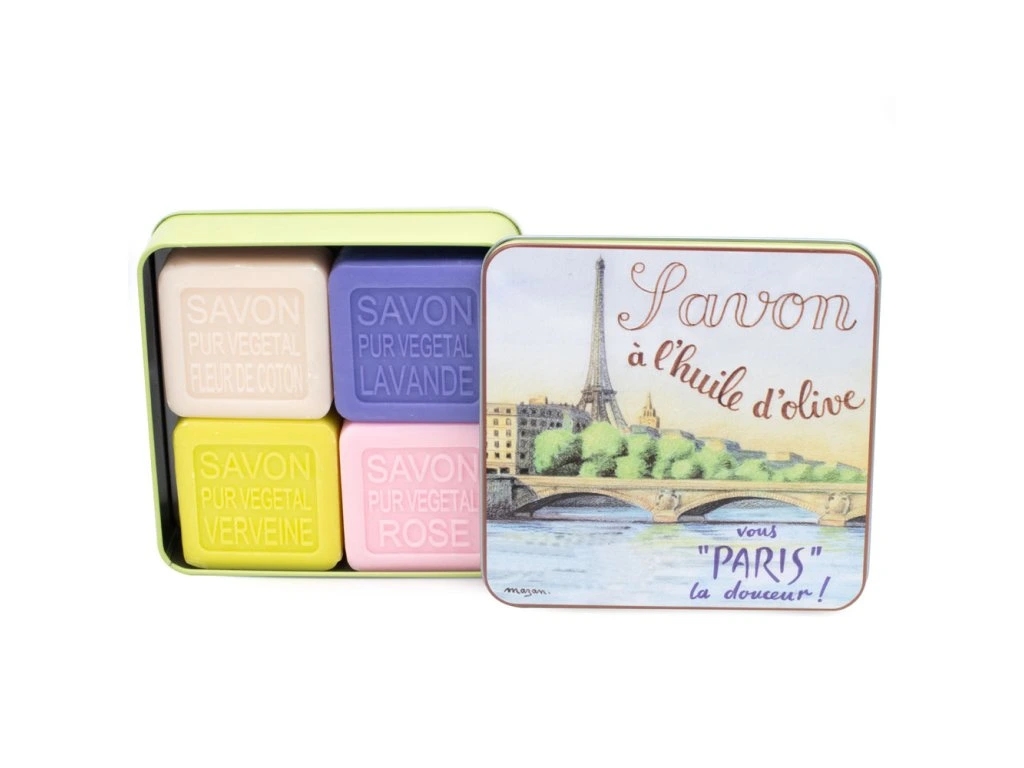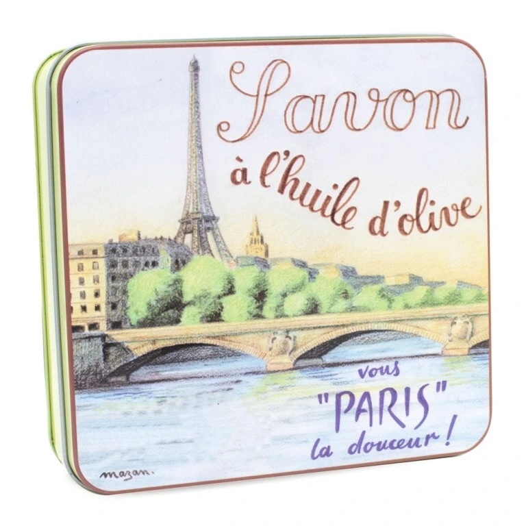 Objevte poetickou stránku Paříže s dárkovou sadou čtyř 100g mýdel v kovové dóze „La Seine“ od La Savonnerie de Nyons. Každé mýdlo je vyráběno tradičně v srdci Provence a obsahuje BIO bambucké máslo a olivový olej z Nyons, které zajišťují jemnou a šetrnou péči o pokožku. Vůně z Grasse přinášejí autentický voňavý zážitek. Ilustrace Luc Mazana zachycuje malebné nábřeží Seiny a propůjčuje dóze výjimečný umělecký nádech.