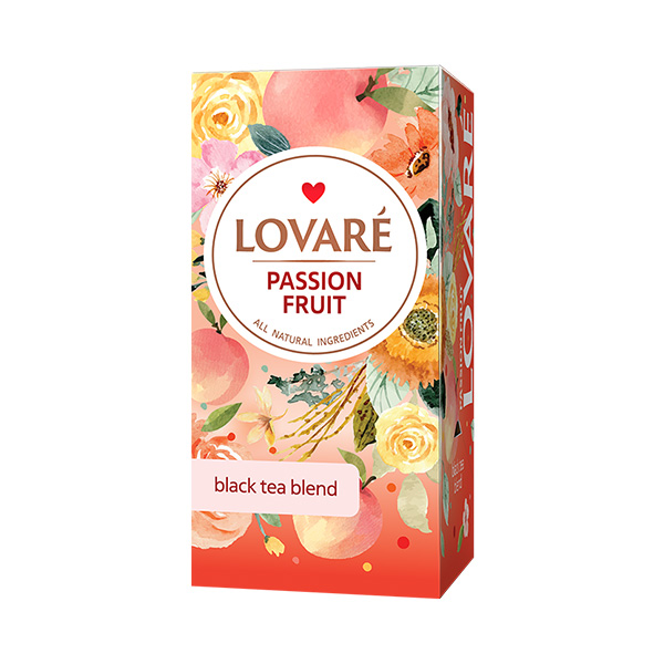 Černý čaj LOVARÉ Passion Fruit Vás vezme na výlet do tropického sadu, kde se setkávají lahodné chutě z celého světa.