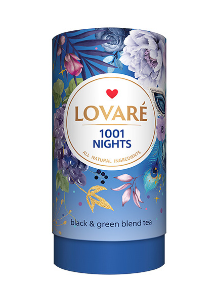 Černý a zelený čaj LOVARÉ 1001 Nights je jako symfonie chutí a vůní, kde se střetávají různorodé ingredience, vytvářející harmonickou a osvěžující kompozici.