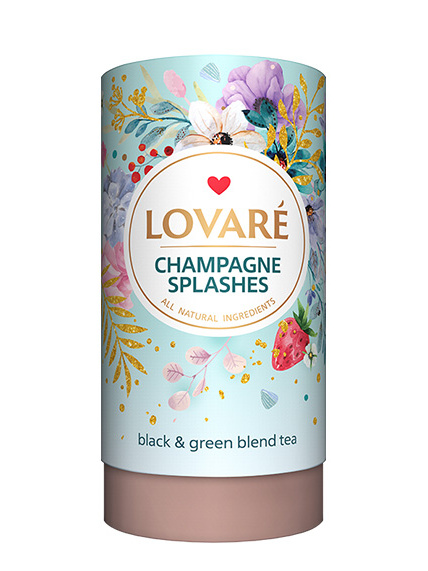 Černý a zelený čaj LOVARÉ Champagne Splashes je vynikající kompromis černého a zeleného čaje obohacený příchutí lesních jahod.