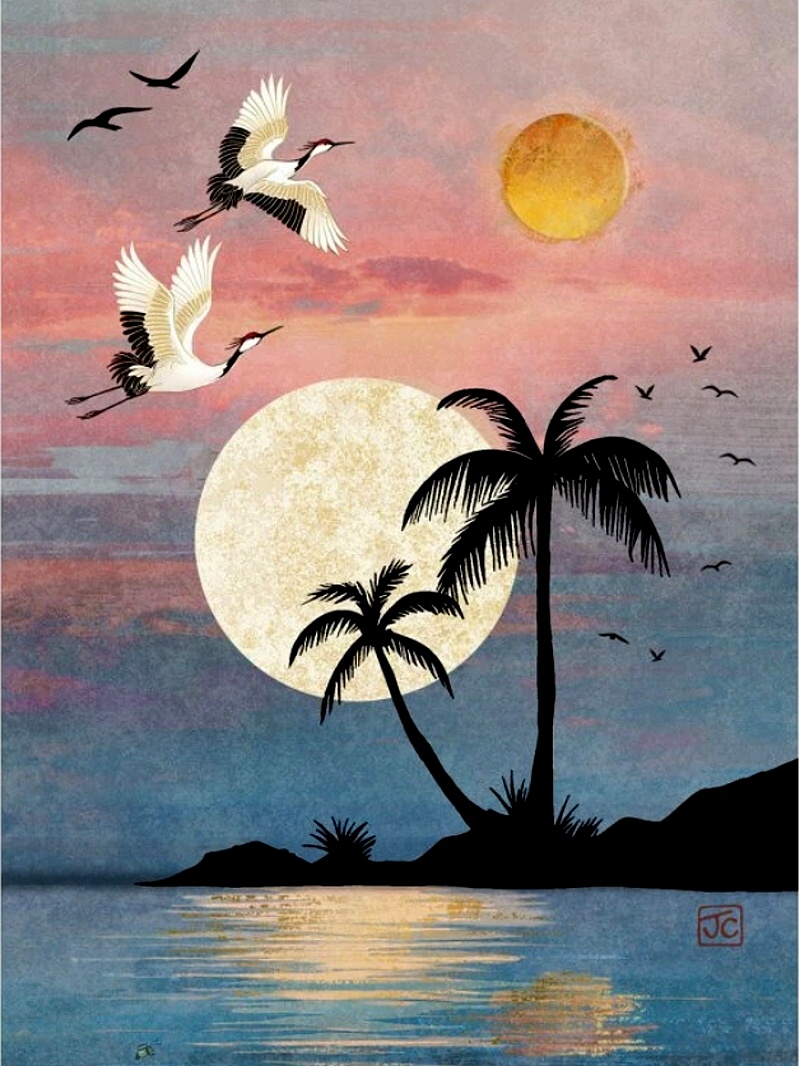 • detail Luxusní přání K020 BUG ART - CRANE PALMS
