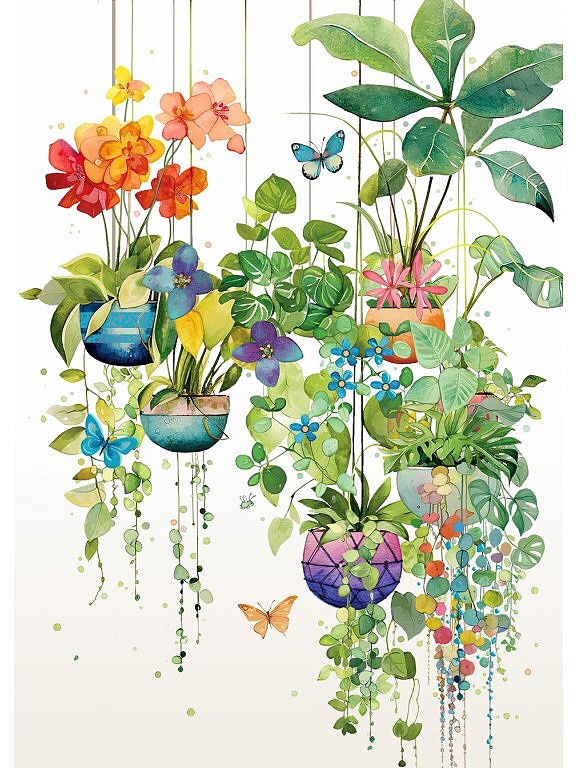Luxusní přání P010 BUG ART - HANGING PLANTS