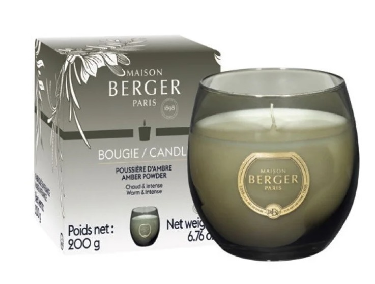 Ručně odlévaná svíčka s rostlinného vosku s bavlněným knotem a vůní Ambrový prach Vás jistě okouzlí svým nádherným tvarem a sofistikovanou vůní od francouzské firmy Maison Berger Paris.