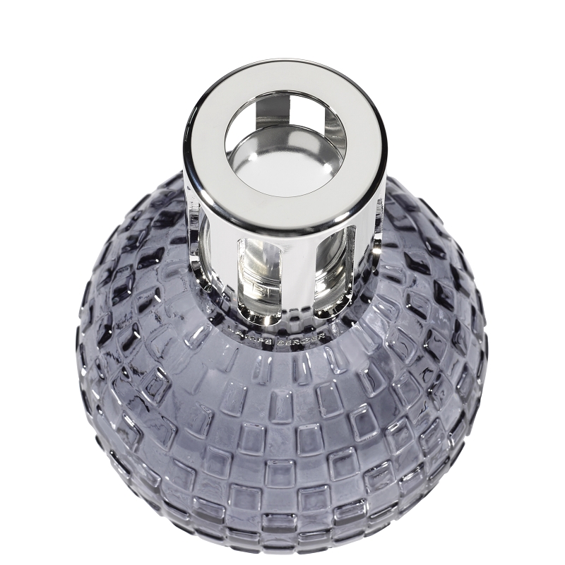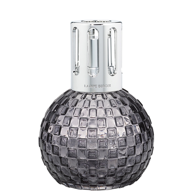 Objevte katalytickou lampu Berger Disco Grey s jejím šachovnicovým vzorem ve skle a vůní Amber Powder pro hřejivou a rafinovanou atmosféru.
