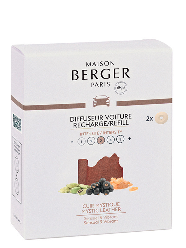 Dodejte své cestě autem dotek voňavé elegance s těmito náplněmi do difuzorů do auta Mystic Leather (Cuir Mystique). Vytvořeno speciálně pro automobilové difuzory Maison Berger Paris. Tyto vonné keramické kameny jsou ideální pro vytvoření smyslné, živé atmosféry ve vašem vozidle. Vůně Mystic Leather je obzvláště živá vůně, která zpočátku zaujme pocitem svěžesti zprostředkovaným kardamomem, který je proložen nádechem kadidla. Srdce ukazuje více květinovou stránku. Základní tón se vyznačuje kožovitými, teplými a kořeněnými styraxovými tóny obklopenými indonéským pačuli.