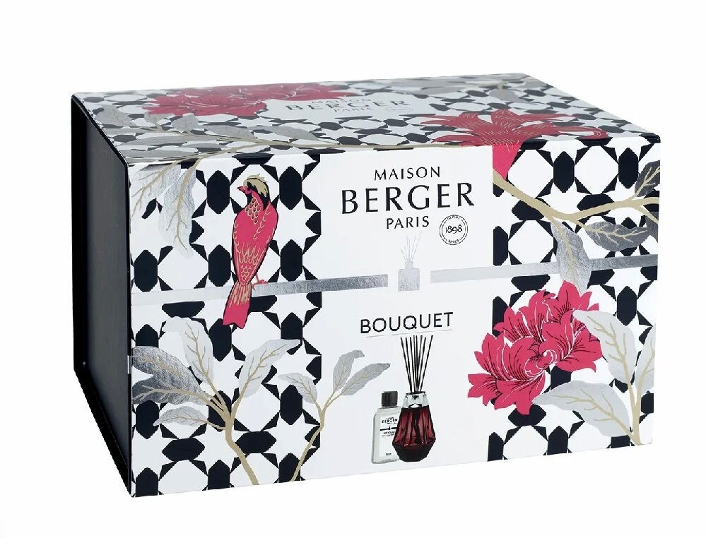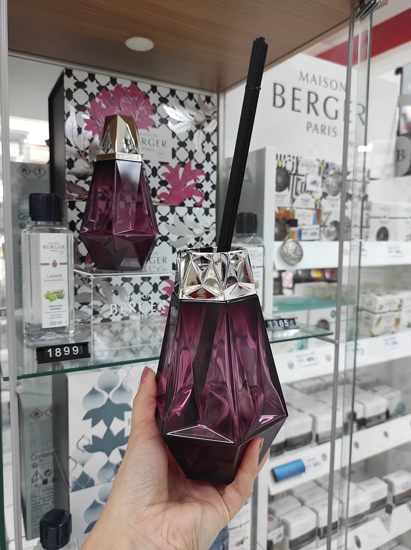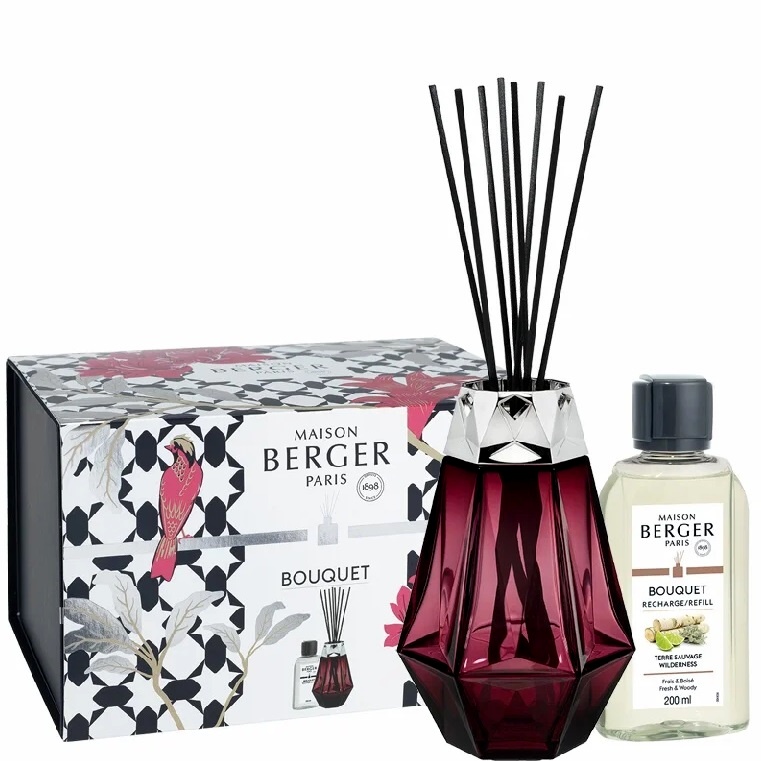 Aroma difuzér Prisme francouzské značky Maison Berger Paris byl vyroben ze silnostěnného barveného skla o objemu 339 ml a výšce 10,3 cm. Vznikl ve spolupráci s designérem agentury De Vog, Armandem Deslolem, který se specializuje na luxusní zboží. Samotný design byl inspirován barokním obdobím. Fasetové tělo designéru odkazuje na okázalost barokní architektury, doplňuje jej stříbrná ochranná korunka ve stejnéms stylu.