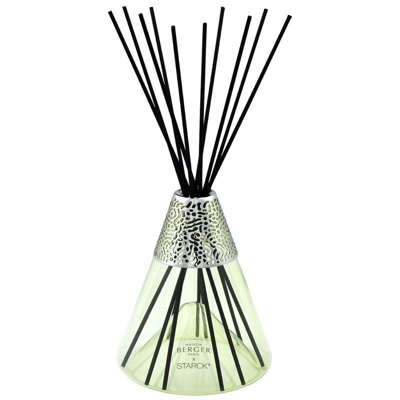 Dárková sada Maison Berger Paris obsahuje elegantní aroma difuzér Starck + interiérový parfém pro difuzéry ze stejnojmenné kolekce o objemu 400 ml a 10 polymerových vonných tyčinek.