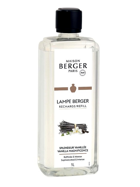 Parfém pro katalytické lampy francouzské značky Maison Berger Paris s rafinovaně smyslnou vůní Velkolepá vanilka si vás získá kombinací vůní madagaskarské vanilky, citrusů, rumu, pačuli a kakaa. Náplň obsahuje 1000 ml.