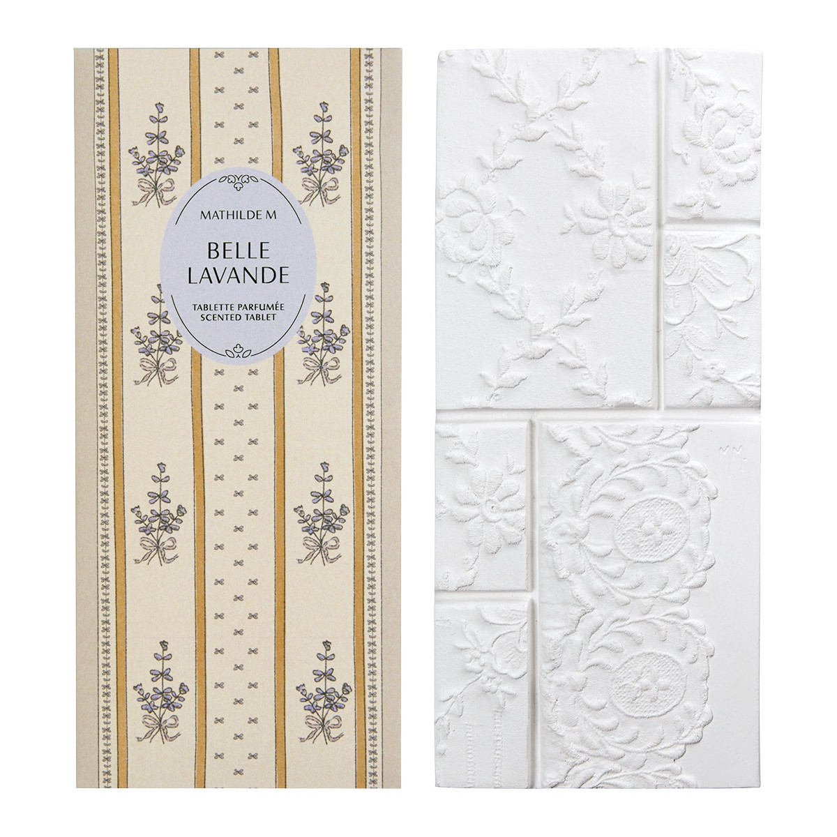 Vonný jíl ve tvaru tabulky "čokolády" s omamnou vůní čerstvé levandule od francouzské firmy Mathilde M.