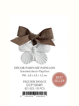 Emblematické know-how naší značky, tyto parfémované sádrové dekorace, pečlivě ručně opracované, jsou vyráběny v našich dílnách. Zcela napuštěné parfémem uvolňují svou sladkou vůni pomalu a dlouho, ať jsou umístěny kdekoli. Objevte originální a autentický způsob, jak provonět malé prostory vašeho domova tím, že je umístíte do skříní, zásuvek, zavazadel.