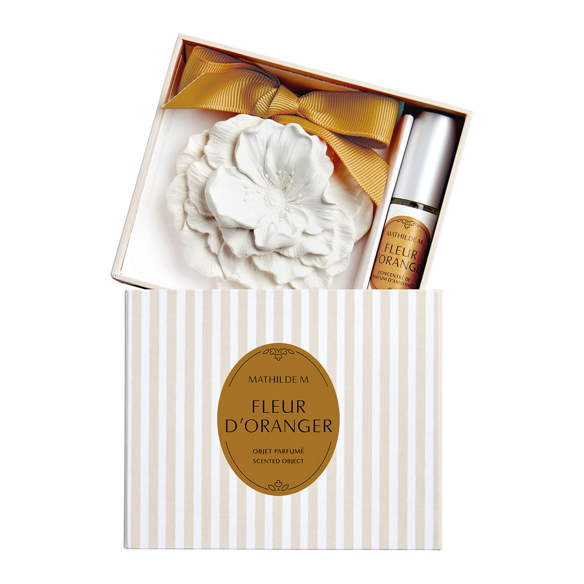 Dárková sada velkého vonného jílu a koncentrovaného spreje na jíly na provonění Vašeho šatníku s vůní pomerančového květu od francouzské firmy Mathilde M.