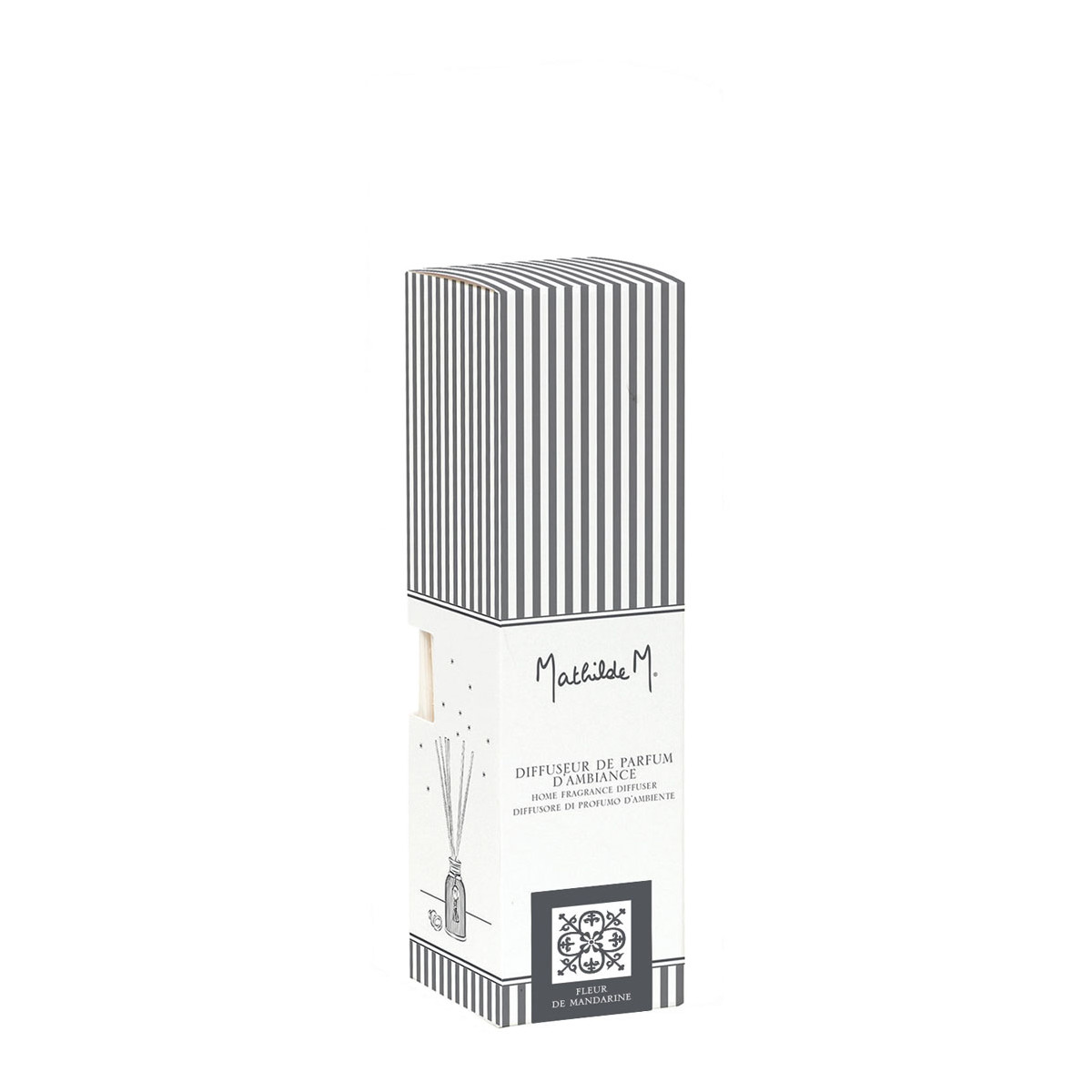 Tento pokojový difuzér Mathilde M. neustále provoní váš interiér Fleur de Mandarine, neodolatelnou voňavou mozaikou, kde se vůně mandarinek mísí se slunečným akordem ylangu a pomerančových květů, které zakončuje kulatost na nádherné vanilce. . Jiskřivá a slunečná vůně...