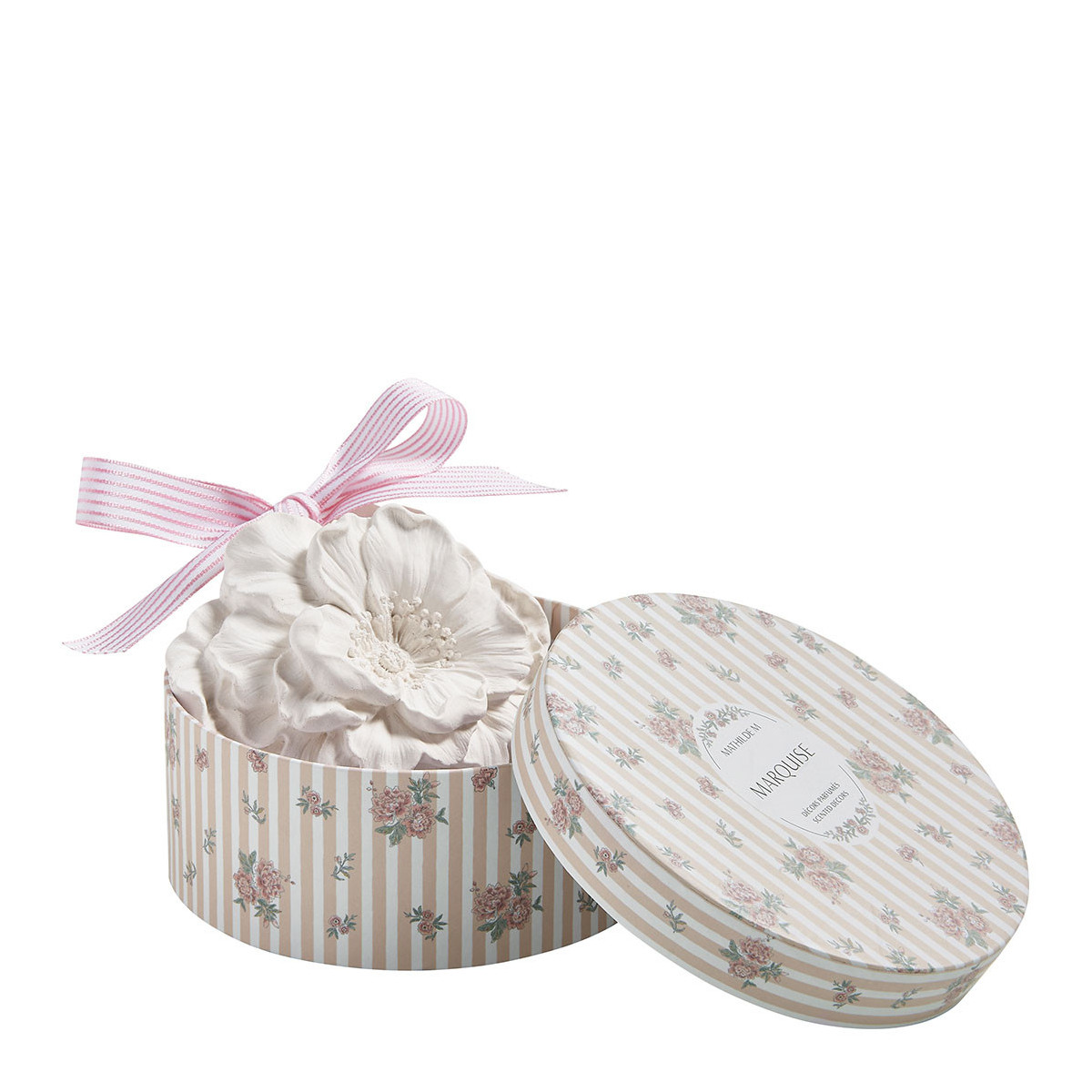 Tato nádherná sada krabiček se skládá z velkoryse vonící sádrové květiny, pečlivě ručně vyřezávané. Jemně a dlouhodobě provoní všechny malé prostory ve vaší domácnosti, jako jsou skříně, zásuvky nebo zavazadla. Nechte se zlákat jemnými jarními květinami, které zdobí tento truhlík.
