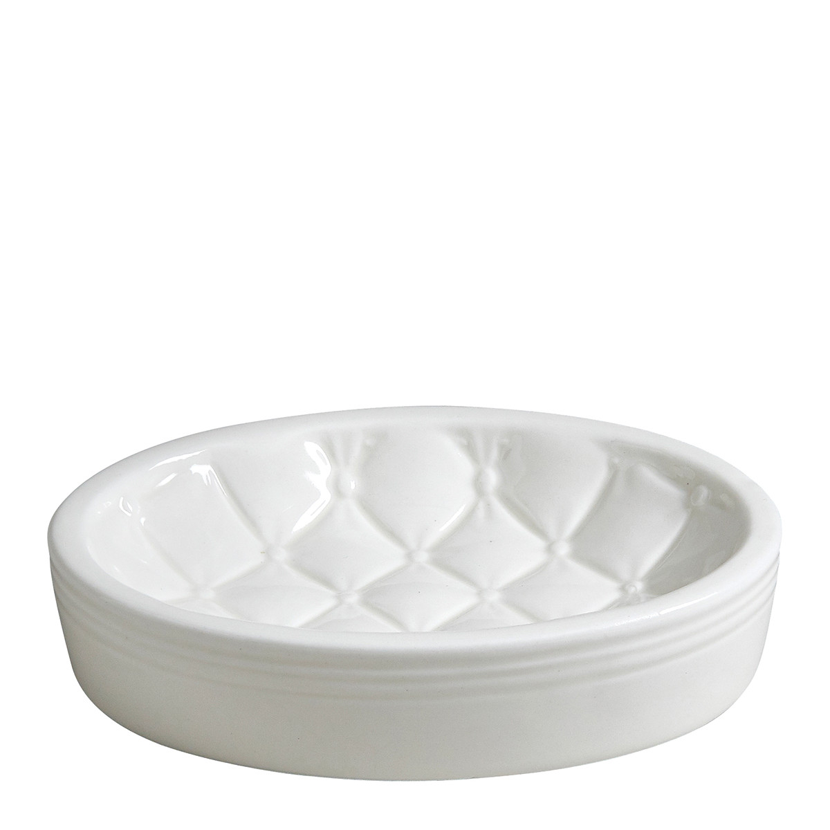 Keramická mýdlenka v bílém provedení s nadčasovým vzorem vhodná nejen jako mýdlenka, ale i jako talířek na šperky od francouzské firmy Mathilde M.