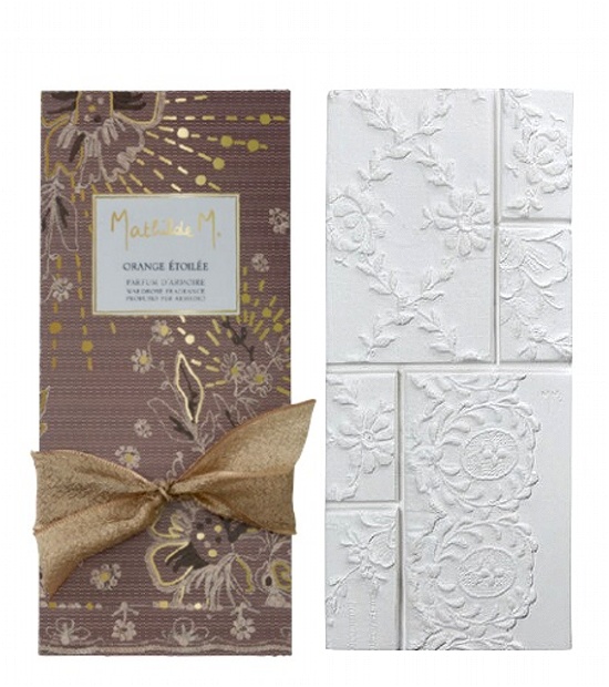 Tato vonná, sádrová, pečlivě ručně vyřezávaná tabulka, se vyrobí a ovoní v našich dílnách – a poté už putuje z Francie přímo do vašeho domova,kde postupně uvolňuje omamnou vůni svátečního pomeranče. Naše tipy na použitíRozbijte tabulku na kousky a jemně provoňte všechny malé prostory ve vaší domácnosti, jako jsou skříně, zásuvky nebo zavazadla.Donekonečna je provoňte koncentrátem bytové vůně Mathilde M.