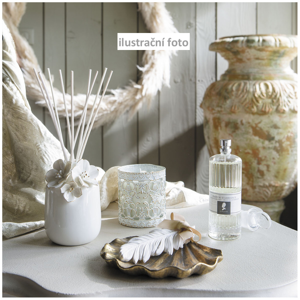 Když vůně vyprchá, oživte ji koncentrátem bytové vůně Mathilde M dle vlastního výběru. Sprej nanesený přibližně 10 cm od dekoru stačí k provonění na několik týdnů.