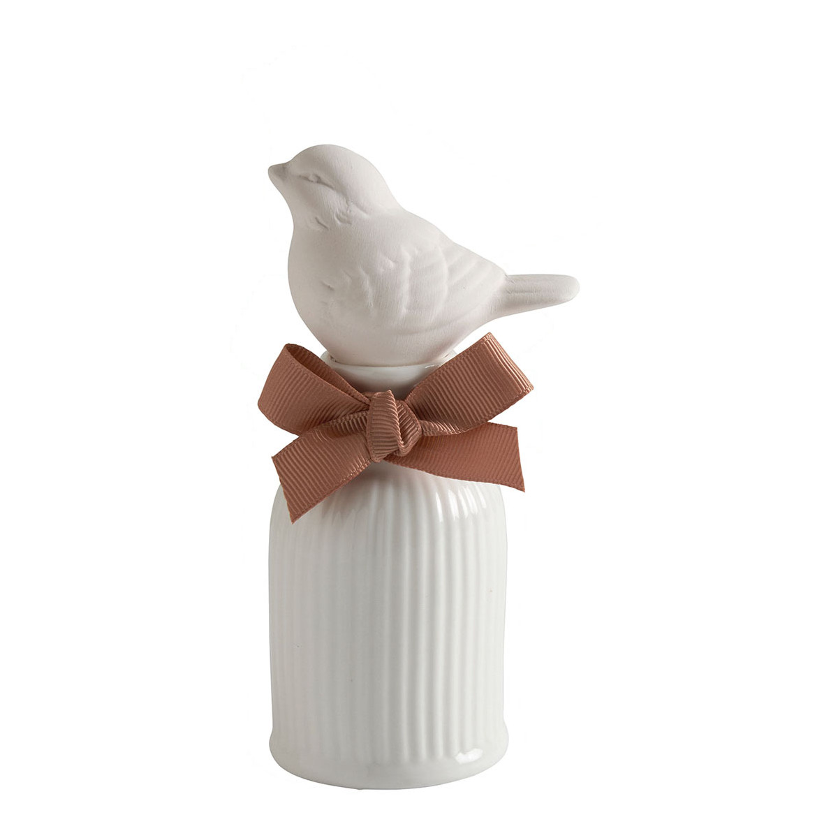 Nechte se zlákat keramickým pokojovým vonným difuzérem ve tvaru nádobky s ptáčkem, který provoní váš interiér na dlouhou dobu. Po umístění na difuzér je jílový ptáček napuštěn parfémem a kapilárním působením, který se postupně během několika týdnů rozptyluje do okolního vzduchu váš domov provoní. Jíl se barví při kontaktu s parfémem.