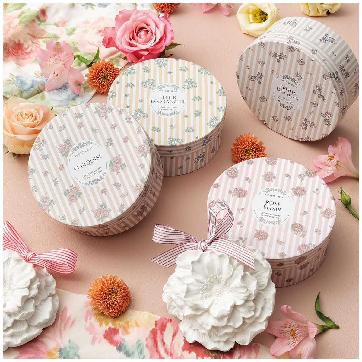 Sádrové dekorace Mathilde M, které jsou pro značku typické, jsou jemně vonící a ručně vyráběné v našich dílnách řemeslnými metodami naším ornamentálním sochařem.