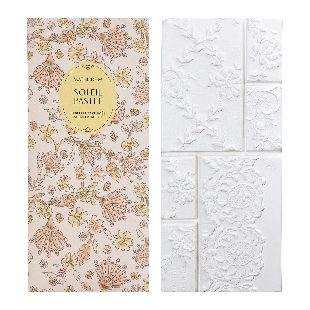 Sádrové dekorace Mathilde M, typické pro značku, jsou jemně vonící a ručně vyráběné v našich dílnách řemeslnými metodami naším ornamentálním sochařem.