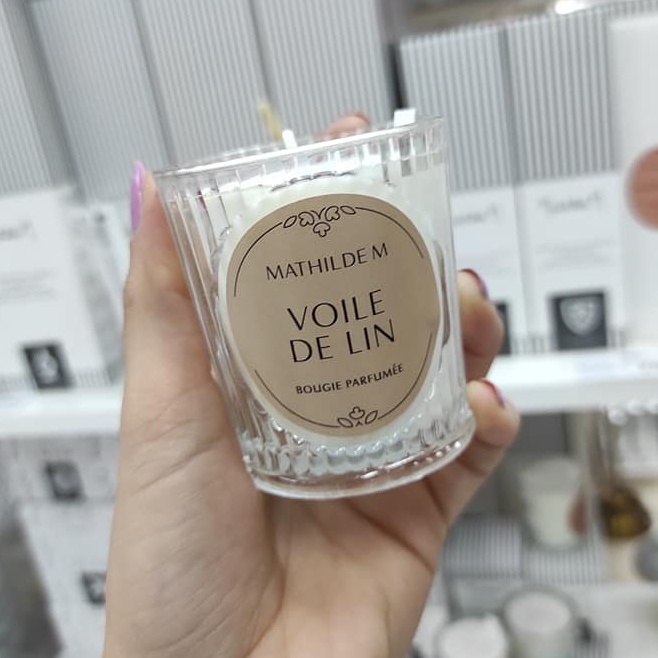 Vonná svíčka s ikonickou vůní Lněný závoj od francouzské firmy Mathilde M.