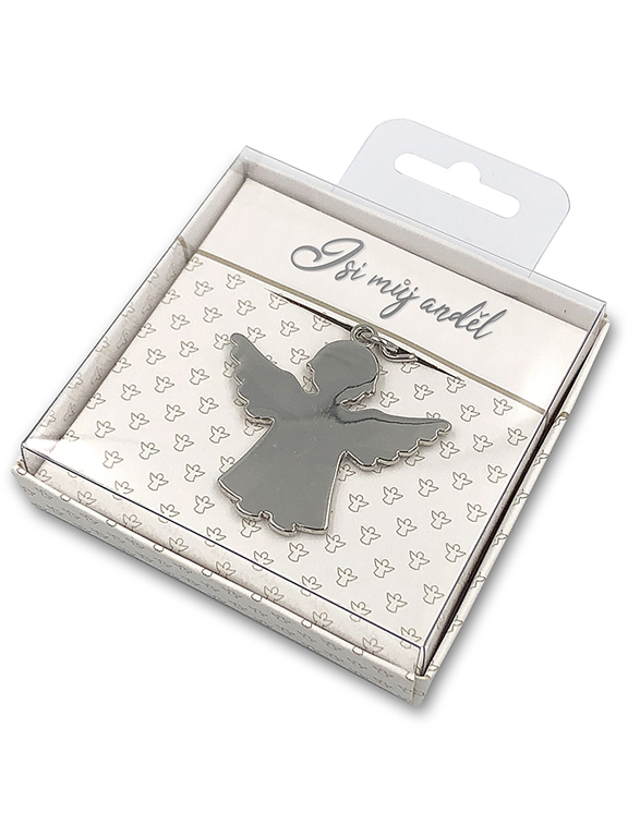 Nádherná kovová klíčenka ve tvaru anděla s lesklým povrchem jistě vykouzlí úsměv na tváři každému. Na krabičce je napsáno věnování, klíčenka je bez popisu.