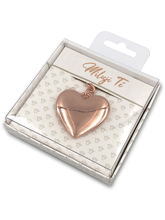 Nádherná kovová klíčenka ve tvaru srdce s lesklým povrchem jistě vykouzlí úsměv na tváři každé ženě. Na krabičce je napsáno věnování, klíčenka je bez popisu.