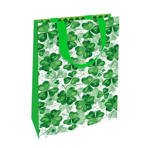 Tato dárková taška s grafickým motivem čtyřlístku pro štěstí je vhodná k zabalení dárků pro ženy i muže.