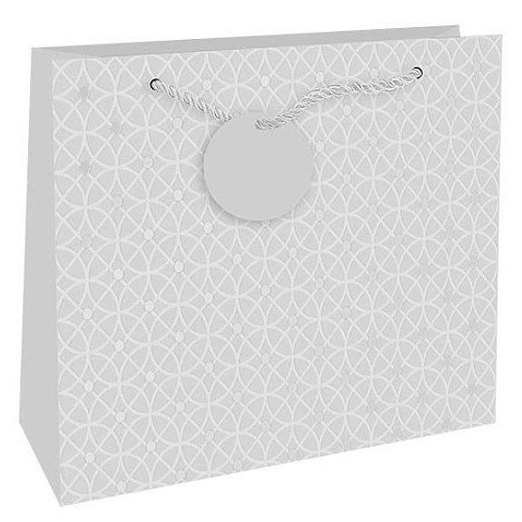 Dárková plnobarevná taška v provedení slonová kost s ražbou a reliéfním grafickým vzorem je vhodná k zabalení dárků pro ženy i muže.
