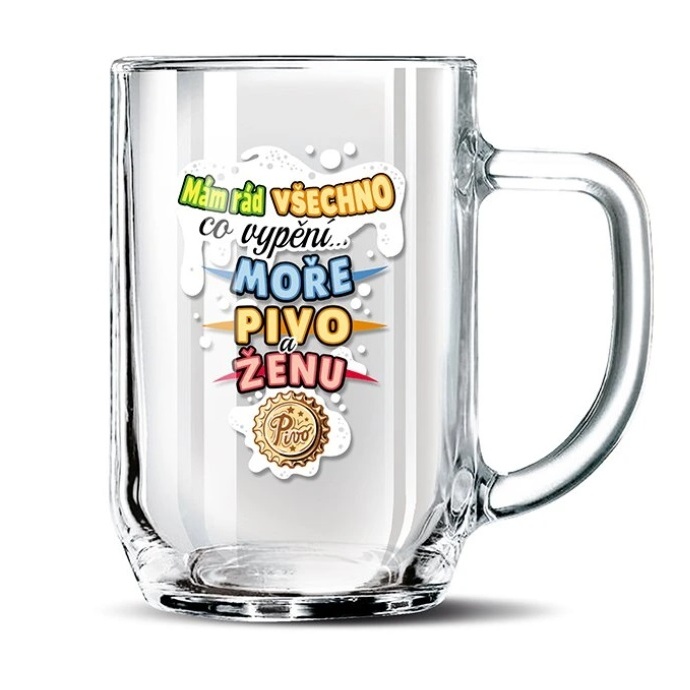 Hledáte perfektní dárek pro pravého českého pivaře? Pak už nehledejte! Náš pivní půllitr s originálním textem "Mám rád všechno co vypění: moře, pivo a ženu" je tou pravou volbou.