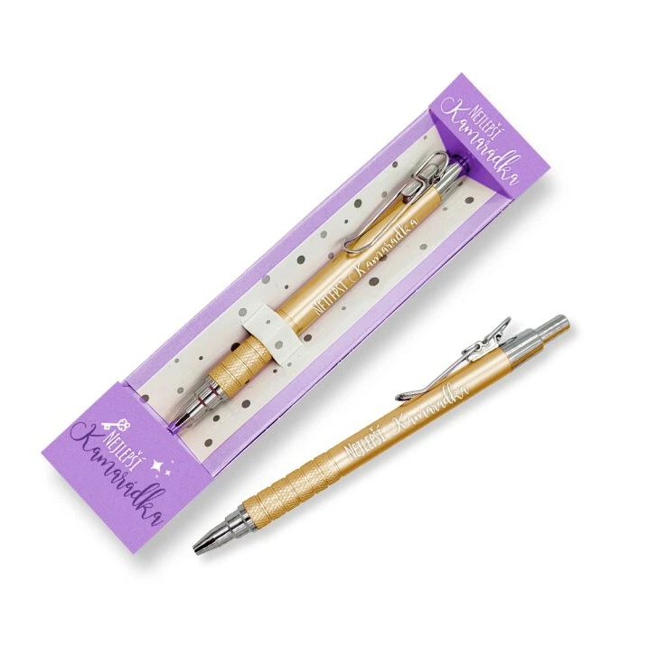 Kovová propiska je designově sladěna i s ostatními dárky z kolekce „nejlepší kamarádka - všechna tajemství jsou u ní v bezpečí“. Můžete tak vytvořit sadu dárků, které jistě ocení. Jsou totiž praktické a milé současně.
