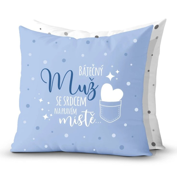 Dárkový polštář je designově sladěn i s ostatními dárky z kolekce „báječný muž se srdcem na pravém místě“. Můžete tak vytvořit sadu dárků, které jistě ocení. Jsou totiž praktické a milé současně.
