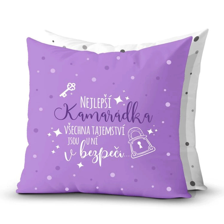 Dárkový polštář je designově sladěn i s ostatními dárky z kolekce „nejlepší kamarádka - všechna tajemství jsou u ní v bezpečí“. Můžete tak vytvořit sadu dárků, které jistě ocení. Jsou totiž praktické a milé současně.