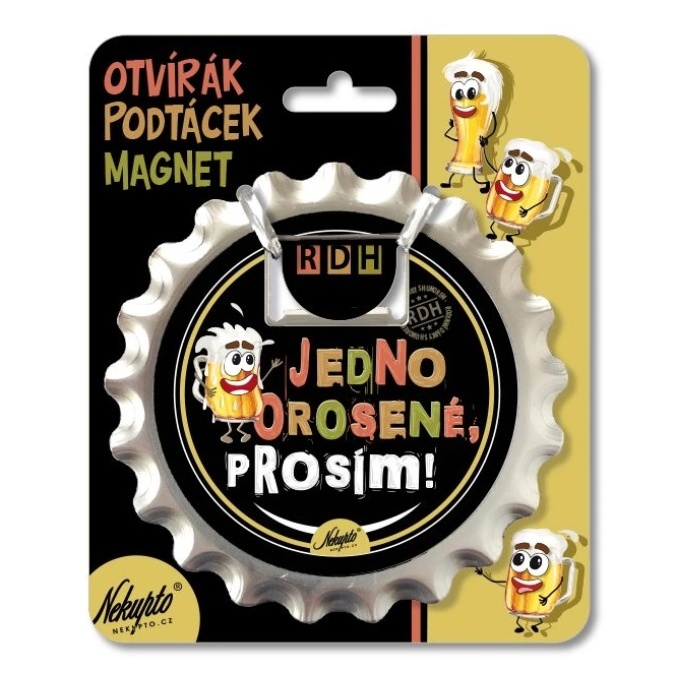 Hledáte unikátní a současně praktický dárek pro vášnivého milovníka piva? Otvírák na pivo s textem "Jedno orosené, prosím!" slouží i jako podtácek. Navíc je možné jej díky magnetu umístit přímo na lednici, kde bude neustále po ruce.
