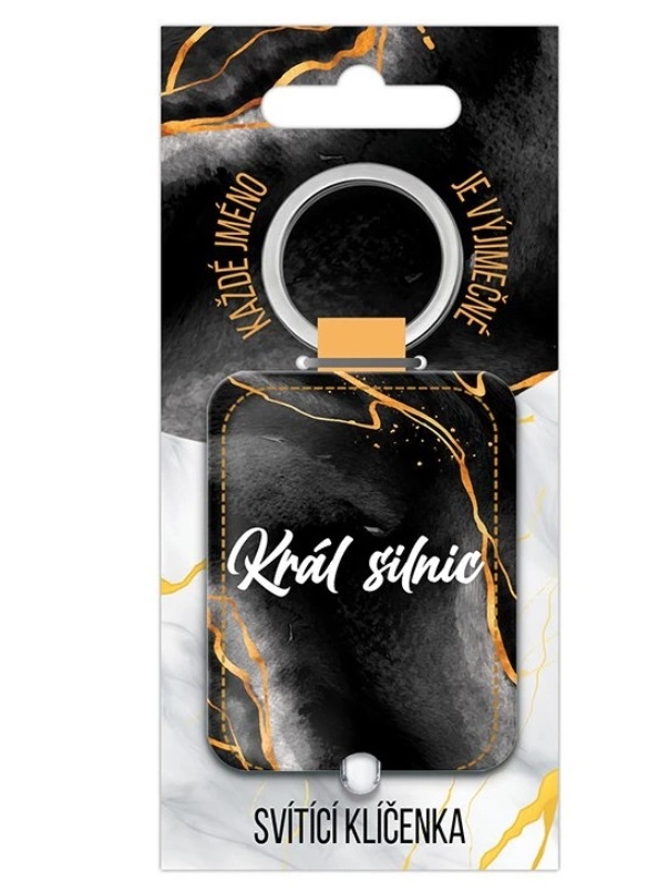 Patří silnice jemu? Pak je tato klíčenka jasnou volbou. Svítící klíčenka s věnováním „Král silnic“ je originálním a uznáním nabitým dárkem pro každého muže, který miluje řízení, své auto a pocit svobody na čtyřech kolech. Tento stylový talisman v mramorovém designu dodá každému svazku klíčů od vozu punc výjimečnosti.