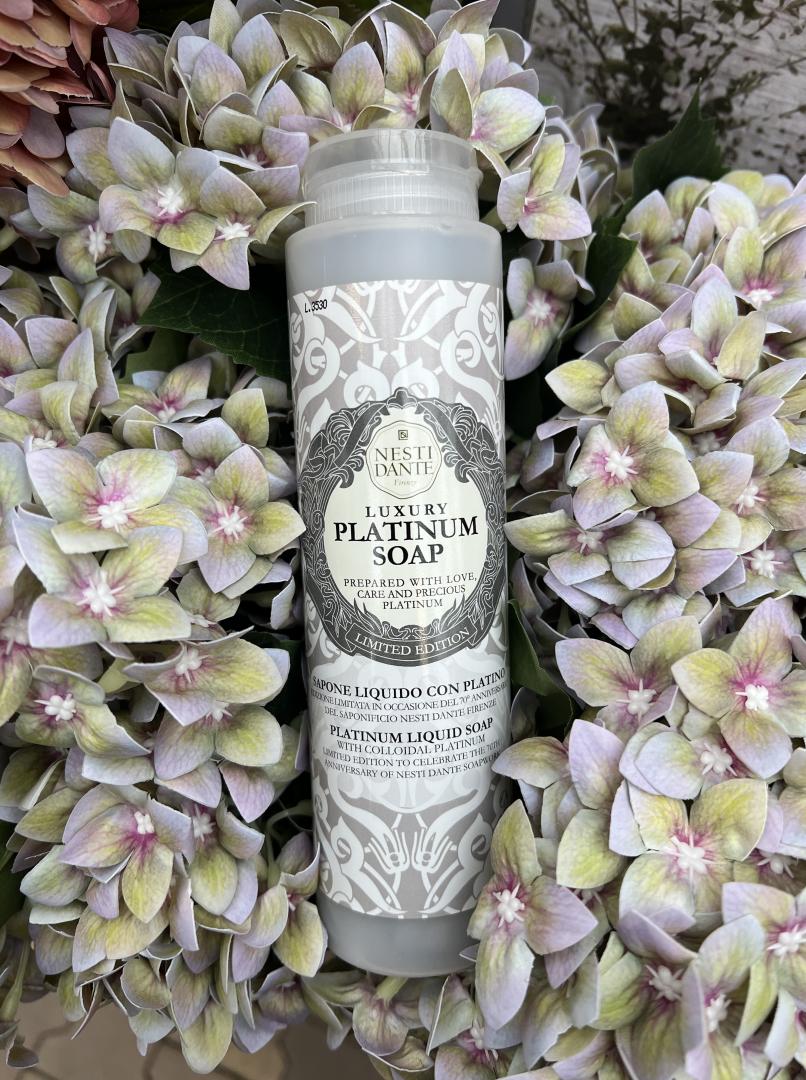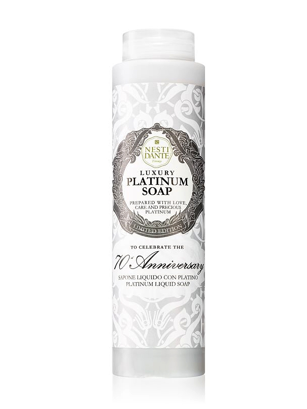 Již sedmdesátým rokem od svého založení vytvořila Saponeria NESTI DANTE limitovanou edici vzácného tekutého mýdla s platinou. Díky svým vlastnostem normalizuje účinek pocení a zajišťuje přirozený pocit čistoty. Platina je vzácný antioxidant, který stimuluje tkáně a dodává pleti zdravý, hladký a kompaktní vzhled. Saponeria NESTI DANTE dále vyšperkovala toto nové měřítko krásy jedinečným a intenzivním tónem absolutní Camelia Bella z Florencie a vzácného bílého jasmínu velkovévody z Toskánska: symfonická óda na radost ze života.