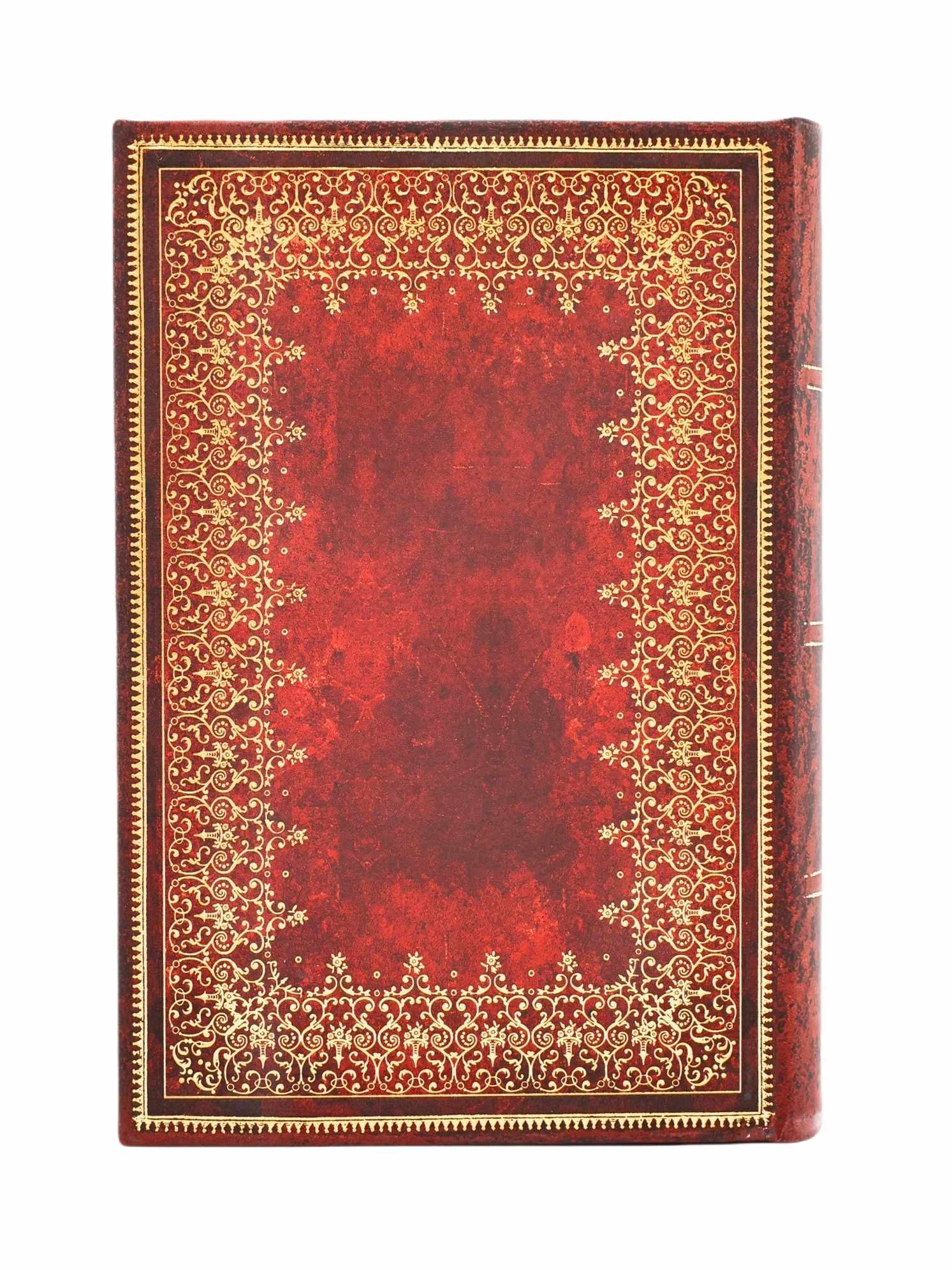 Kožené vazby z renesance byly často barveny v sytých odstínech červené, aby se zdůraznily složité zlaté ozdoby, které je zdobily. V tomto duchu jsme vytvořili i naši fóliovanou obálku na deník, která zachycuje živost a lehkost designu charakteristické pro tyto starožitné knihy.