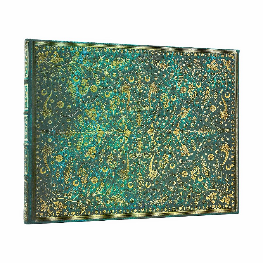 Knihu obyčejných modliteb zakoupil koncem 80. let 20. století irský bibliofil Benjamin Guinness, 3. hrabě z Iveagh (1937–1992). Je vázána v červeném marokánu se zlatými nástroji, zlacenými okraji a hladkými mramorovanými koncovými listy. S nadšením reprodukujeme tuto velkolepou starožitnou vazbu v okouzlující zelené barevné kombinaci, která vzdává hold našemu společnému irskému původu. Doufáme, že květinové ozdoby tohoto designu Smaragdového květu vás inspirují k využití štědrosti přírody i darů poznání.