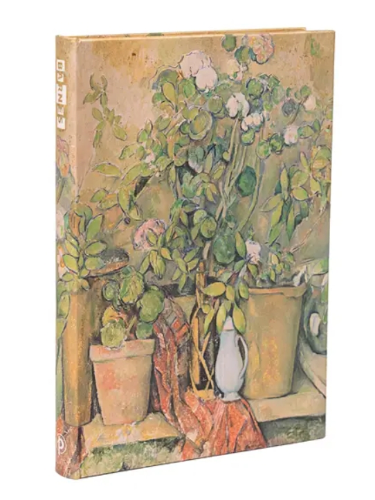 Paul Cézanne (1839–1906) byl francouzský malíř, který je považován za jednoho z největších postimpresionistů. S terakotovými květináči a květinami Cézann vstoupil do nové éry malby zátiší. Zde aranžuje předměty denní potřeby, včetně džbánu s muškáty v květináčích, uvnitř skleníku na panství svého otce poblíž Aix-en-Provence.