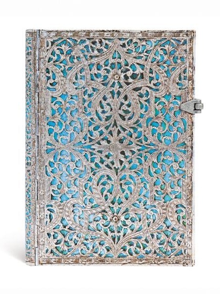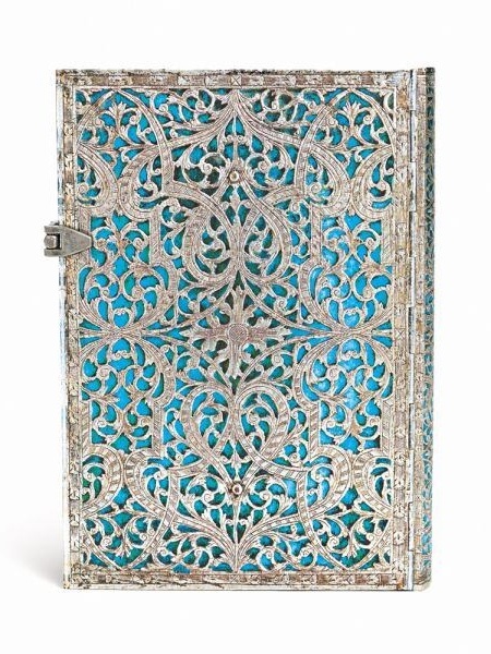 Luxusní linkovaný zápisník v pevných deskách s kovovou klopou jako zámeček od Paperblanks.