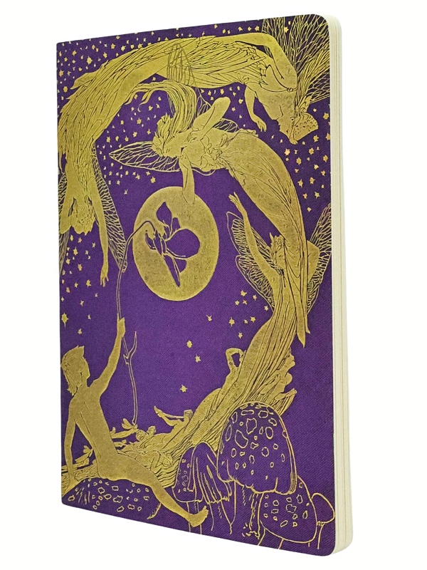 Nádherný velký linkovaný sešit velikostí A4 s motivem Violet Fairy od irské firmy Paperblanks.