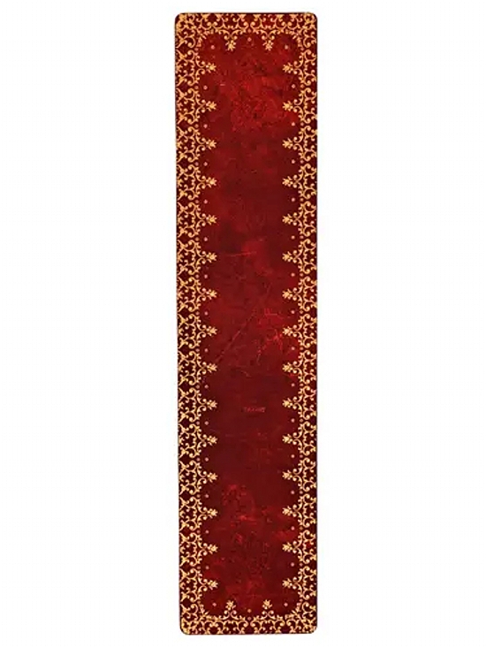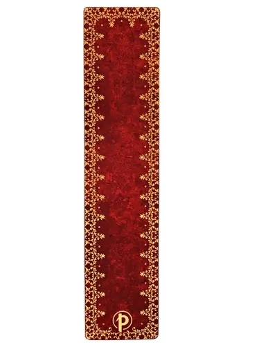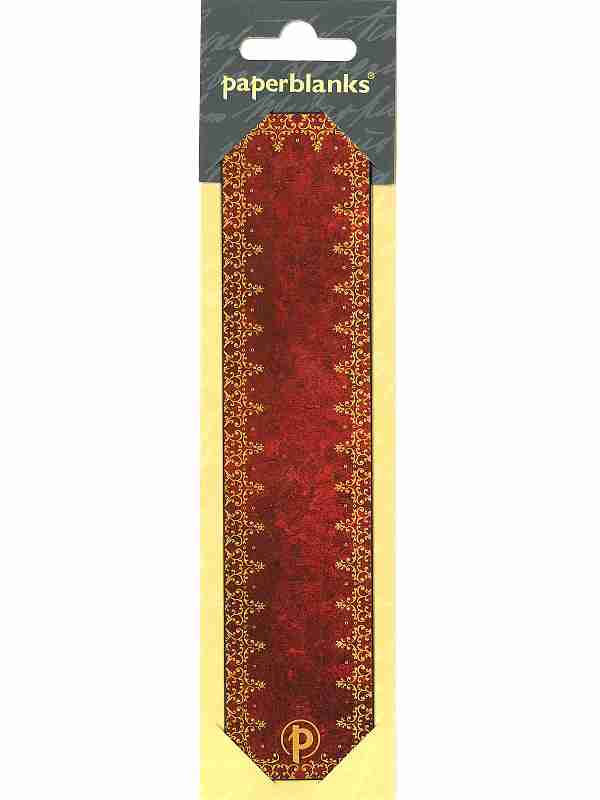 Renesanční kožené vazby byly často barveny sytými odstíny červené, aby zvýraznily složité ozdoby zdobené zlatem, které je zdobily. V tomto duchu jsme vytvořili naši záložku Foiled, která zachycuje živost a lehkost designu charakteristickou pro tyto starožitné knihy.