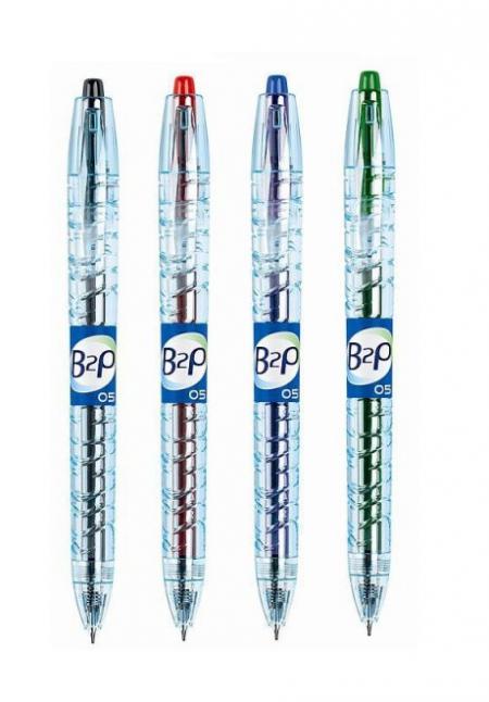 B2P - from Bottle 2 (to) Pen - z plastové lahve vzniklo pero. Gelový roller z řady BeGreen s výměnnou náplní. Použitým materiálem při výrobě jsou převážně recyklované PET lahve. Originálně navržený design pera, transparentní tělo a etiketa odkazují na materiál, ze kterého je pero vyrobeno. Jemné psaní, jasné barvy.
