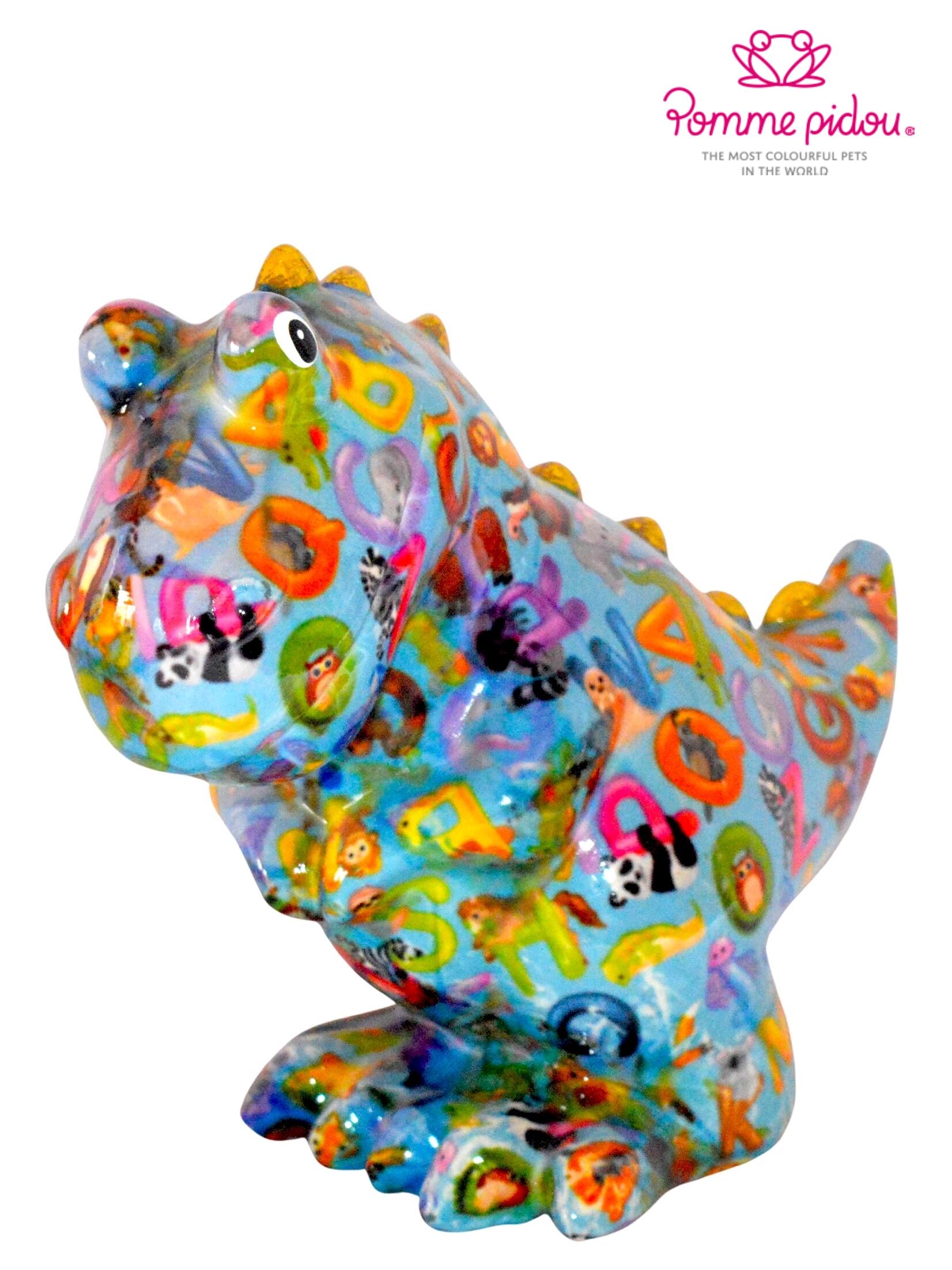 Pomme pidou Pokladnička M - T-Rex, modrý s Abecedou